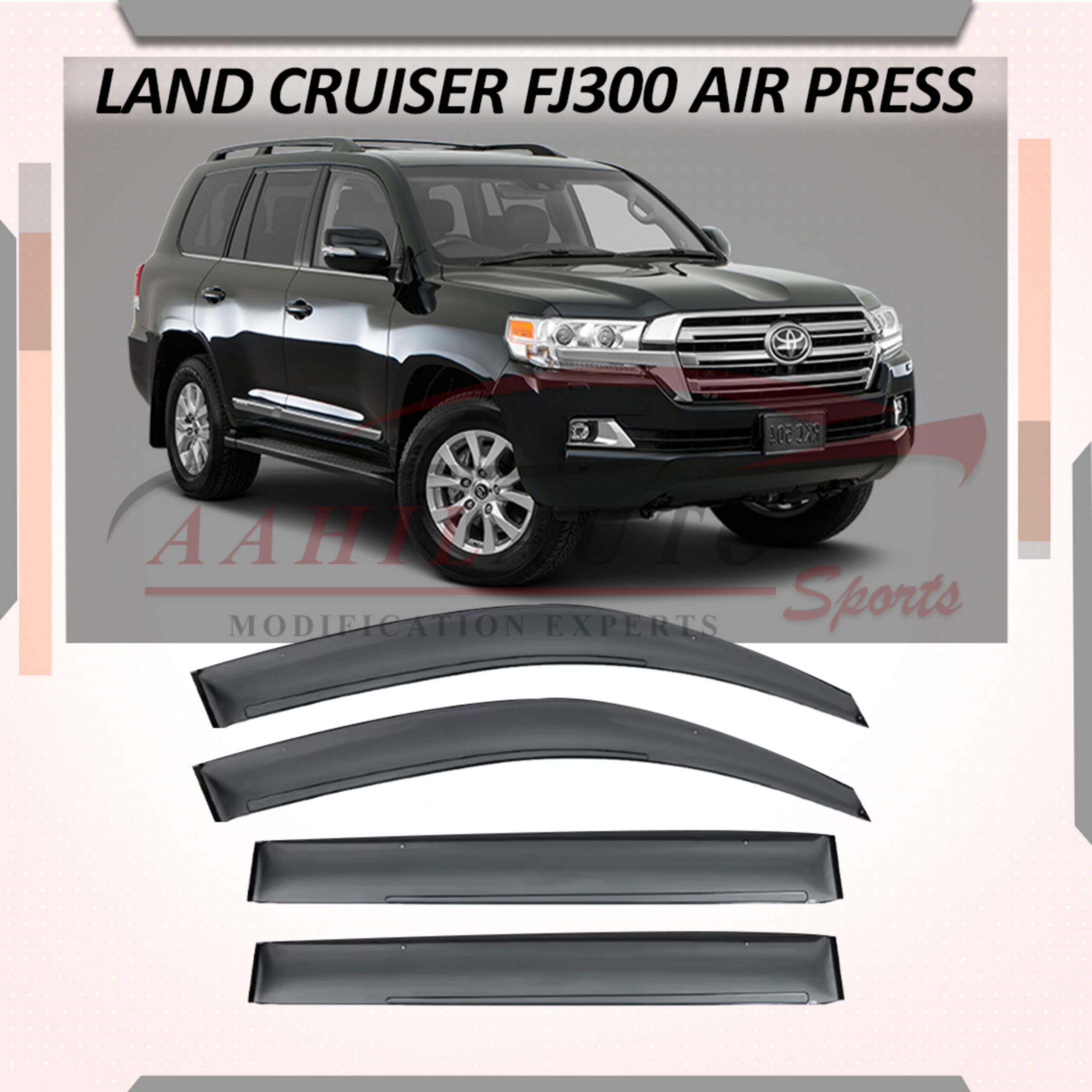 Upgrade the exterior of your Toyota Land Cruiser FJ300 (2021–Present) with TXR Air Press – sleek, smoked window visors built for performance and style. Perfectly contoured for the FJ300’s modern design, these visors allow for improved ventilation, reduced cabin heat, and protection from rain without compromising visibility.
