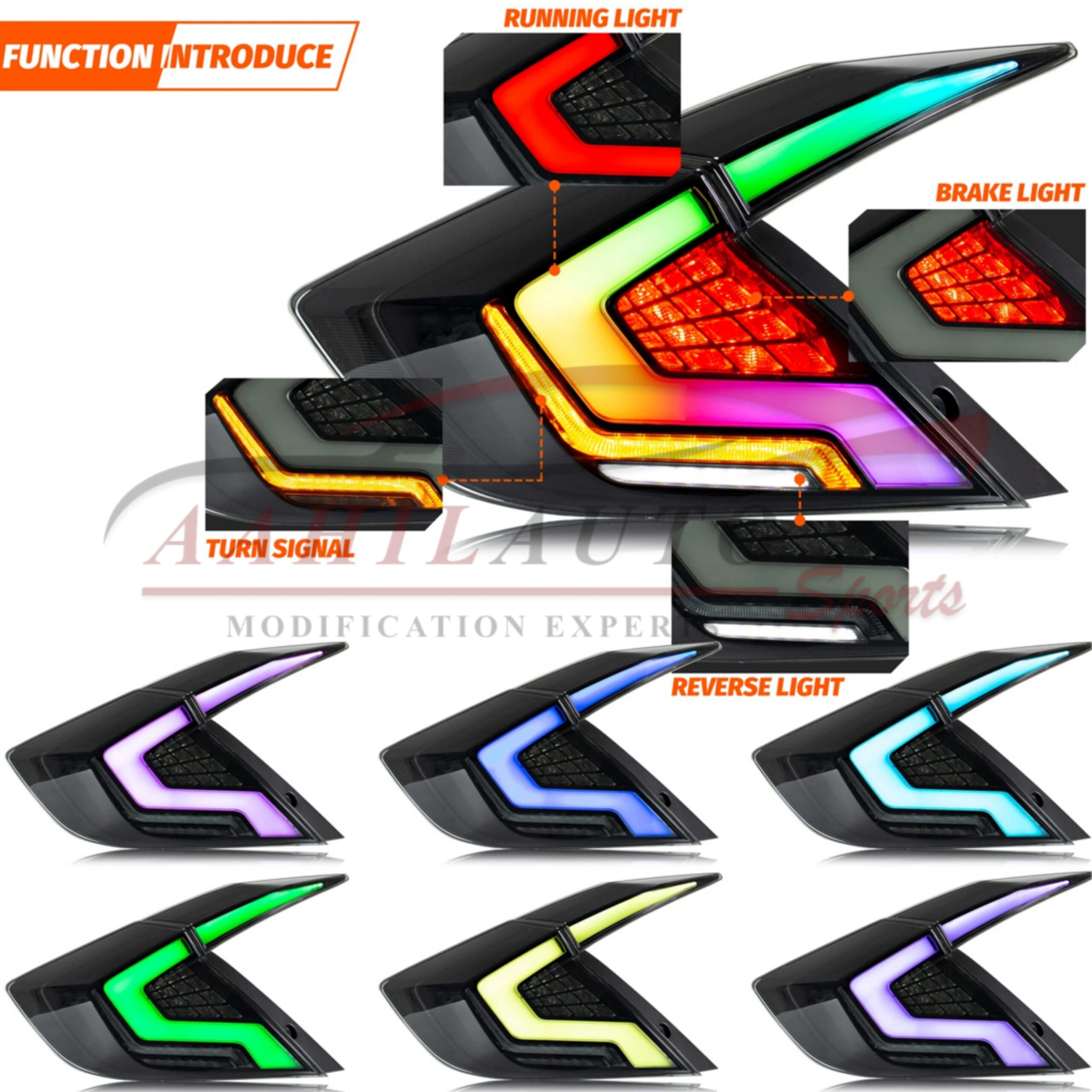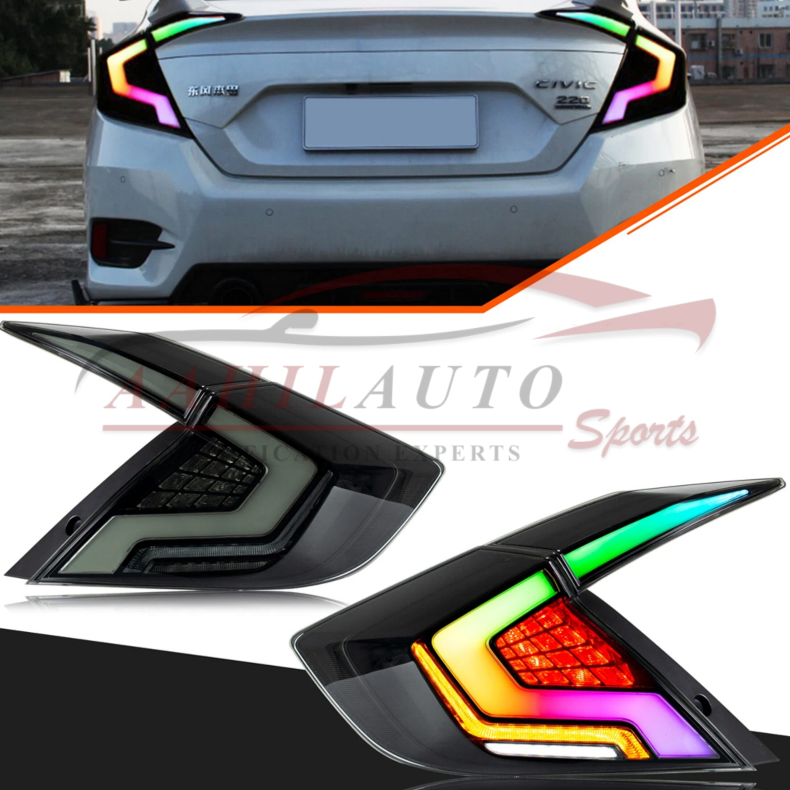 Honda Civic Cobra RGB Style Lava Back Lamps Light Smoke 2016-2021
