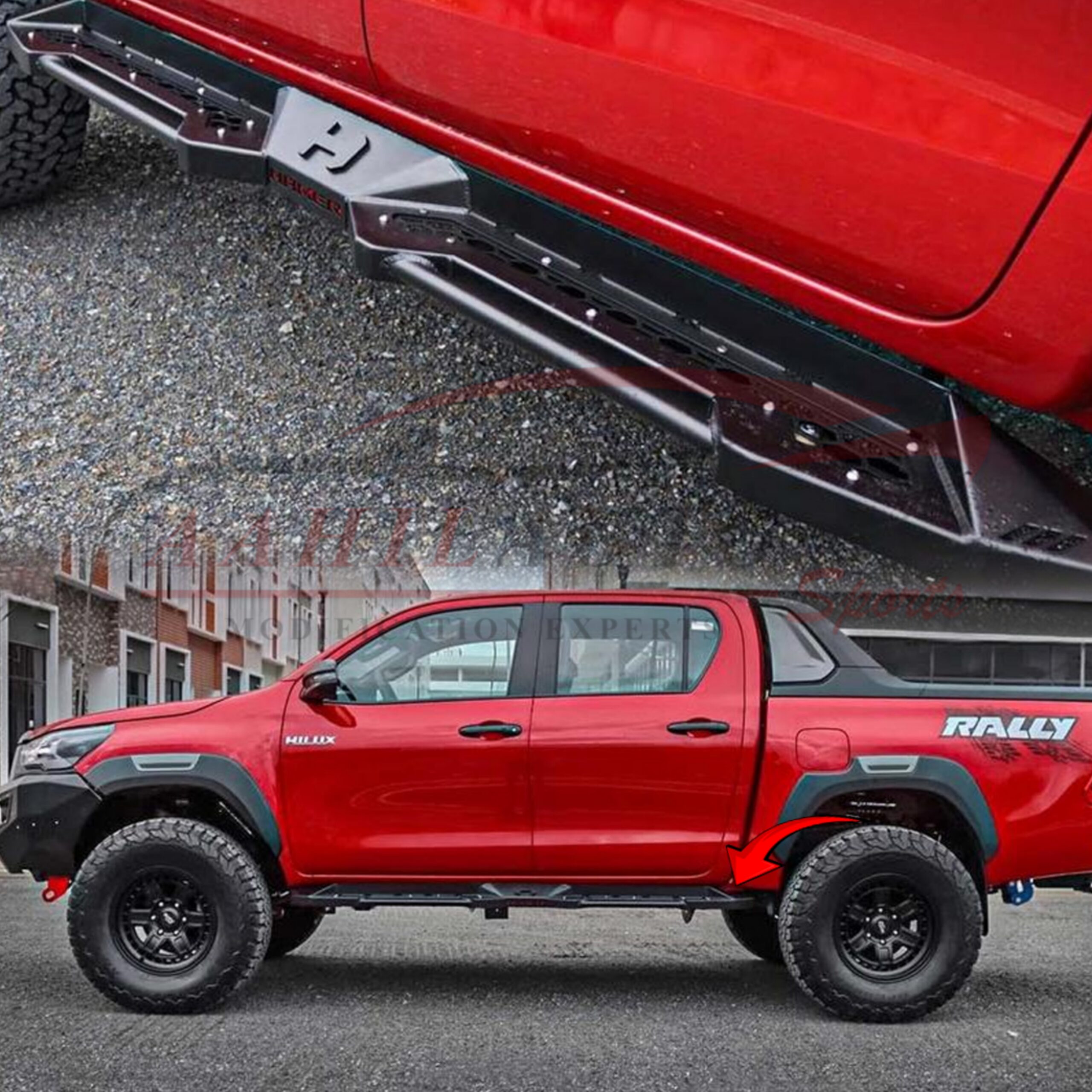 Toyota Hilux Revo/Rocco Hamer Side Steps are the perfect accessory for those who want both strength and style. Designed for rugged durability and adding bold style to your truck.
