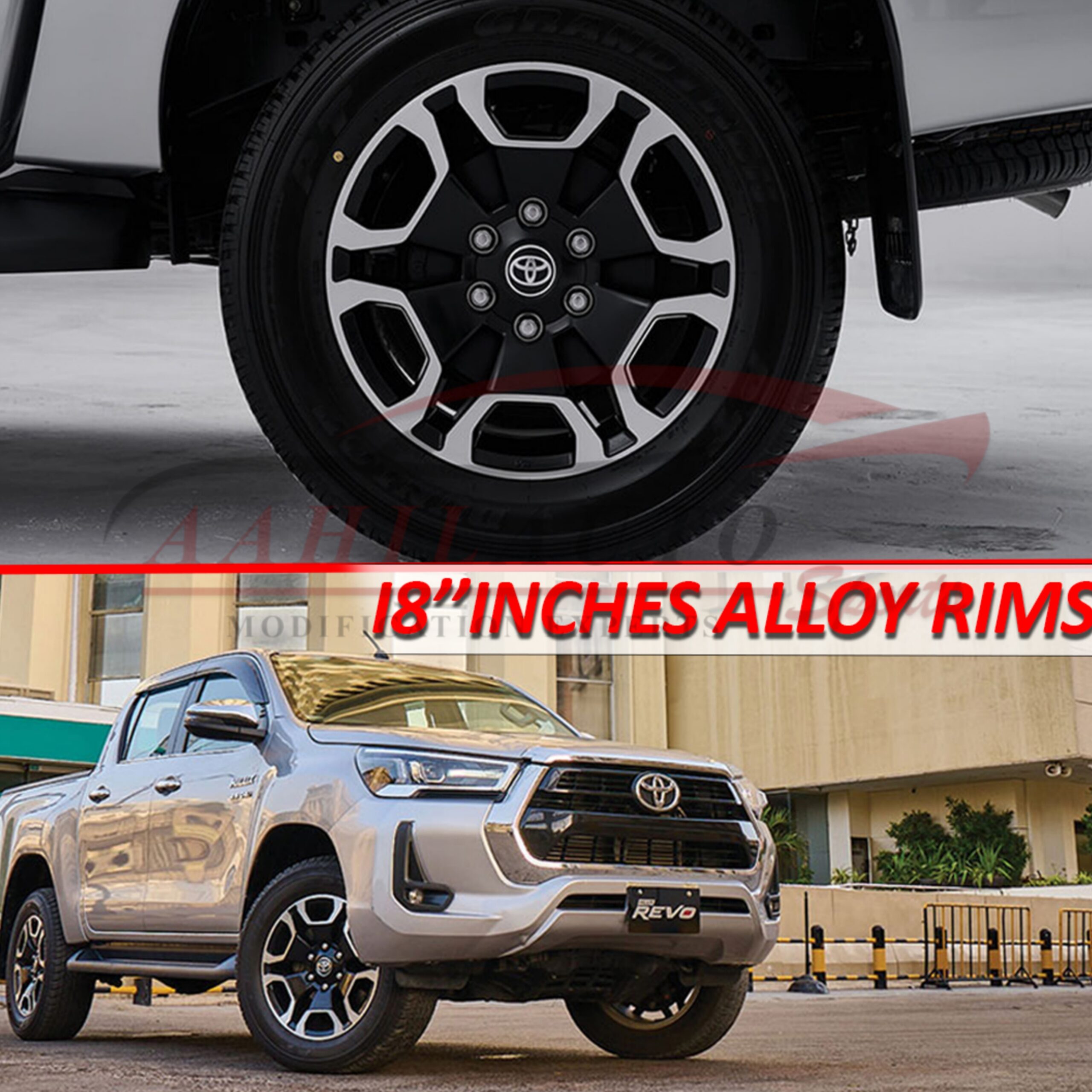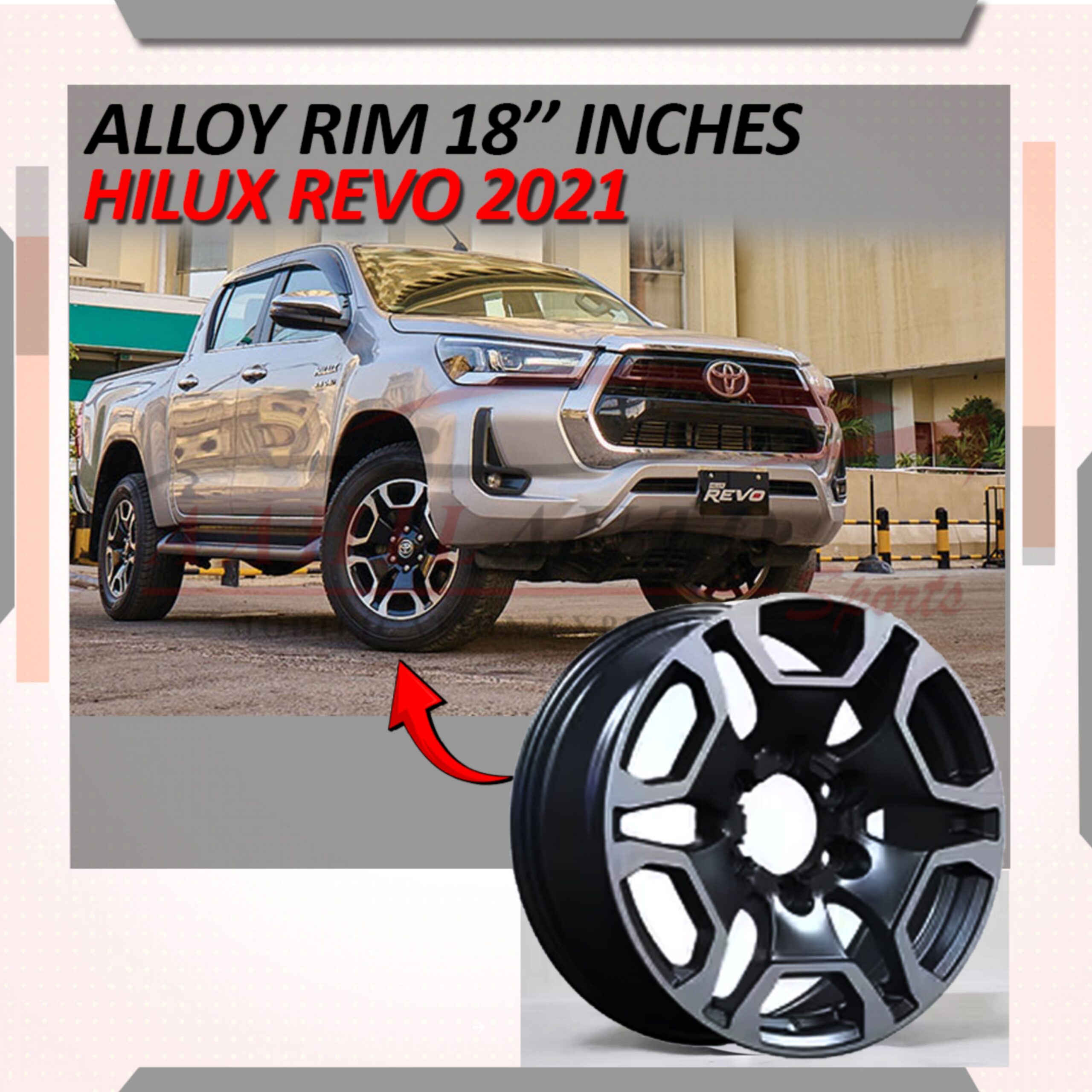 Upgrade the fierceness of your Toyota Hilux Revo or Rocco with high-quality OEM Style Alloy Wheel 18 inches. Custom-designed to ensure a perfect fit, these rims deliver a hot look while boosting your 4×4’s strength and durability. Designed and built with factory floor precision, these lights increase your Car’s performance, visibility and presence. No matter if you are offroading or in the city, these wheels will satisfy the needs of the design and the streets, all for not breaking the bank.