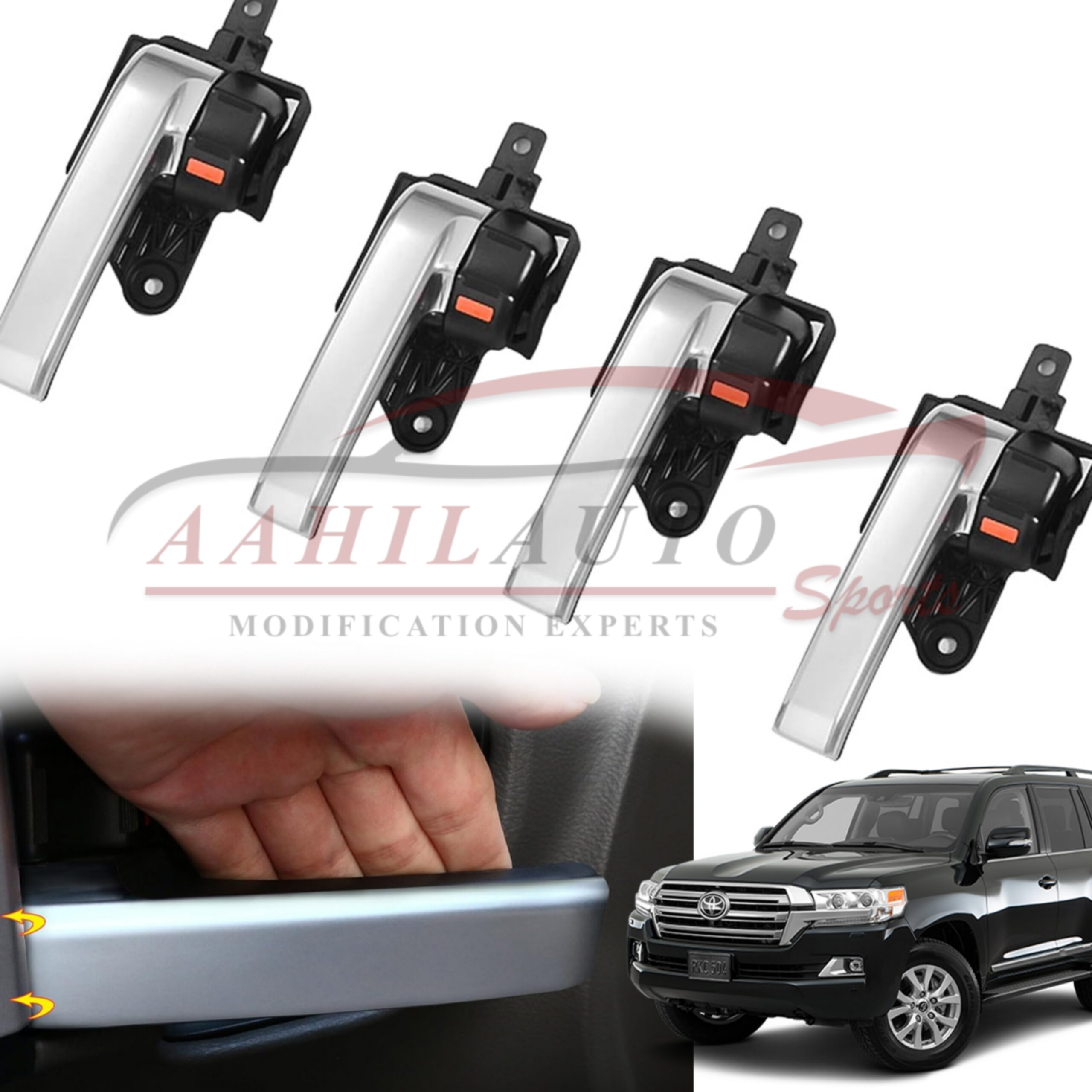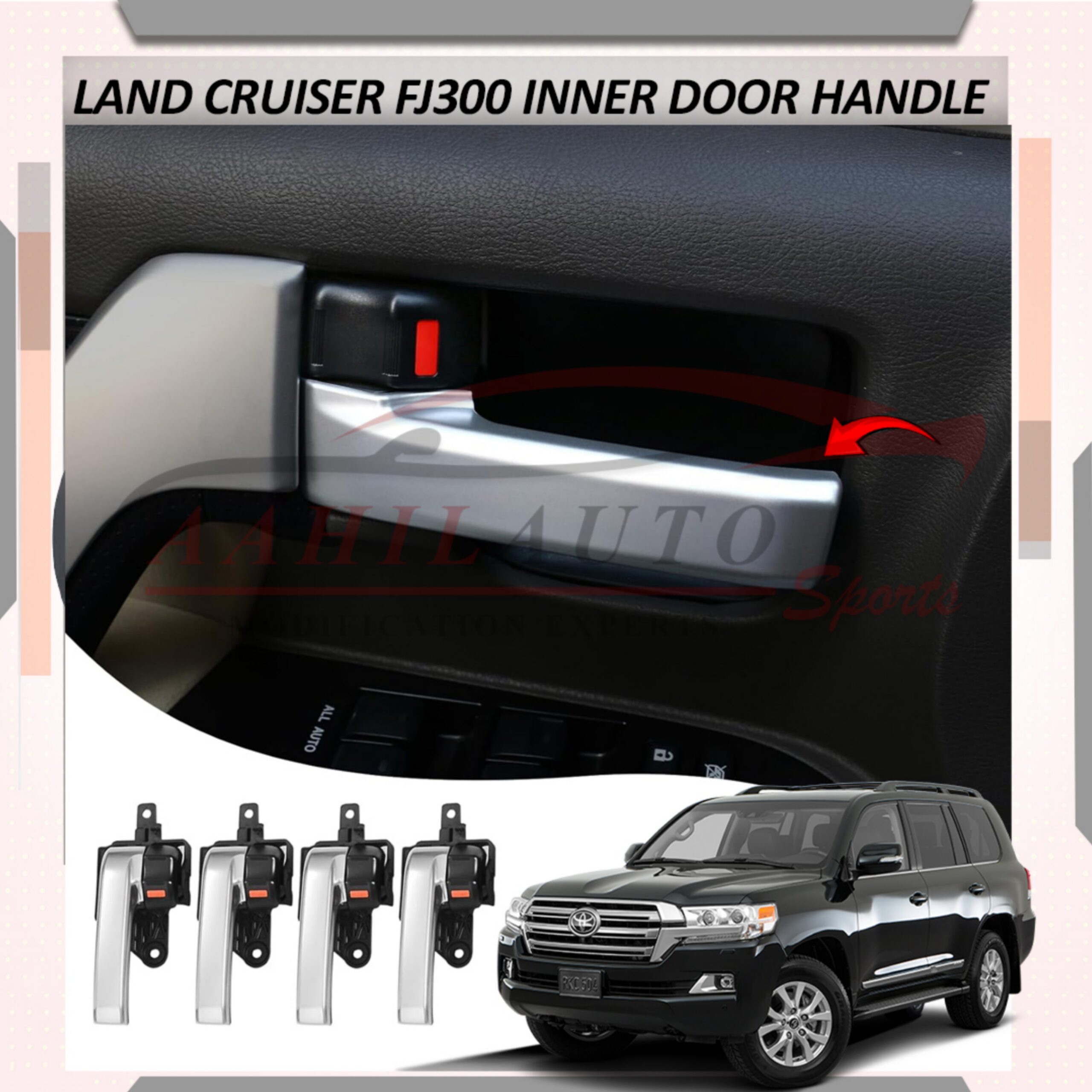 Transform the look of your Toyota Land Cruiser FJ200 (2010-2020 models) with this FJ300 style door handle assembly. This complete replacement set offers a fresh and upgraded appearance, matching the design of the newer Land Cruiser FJ300.