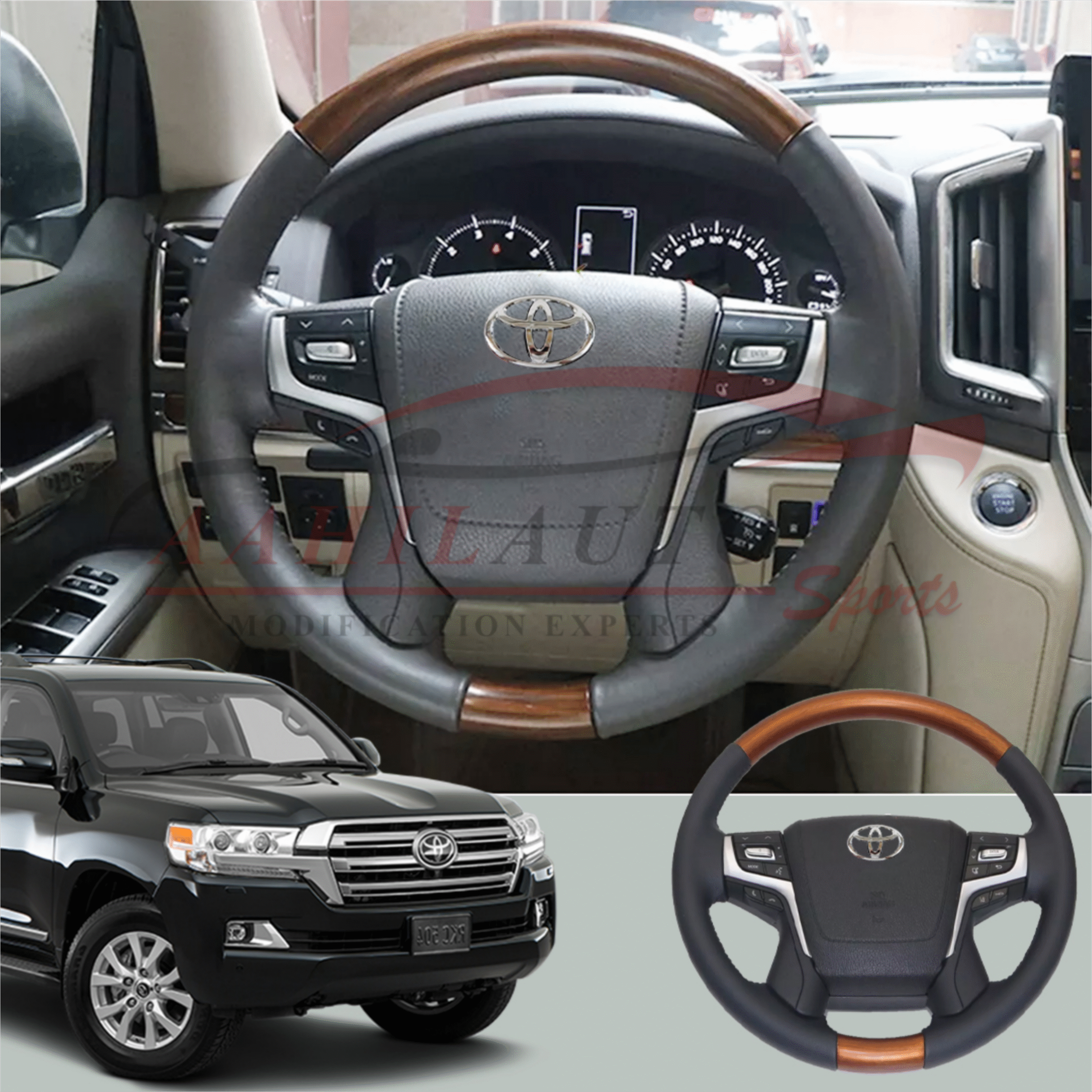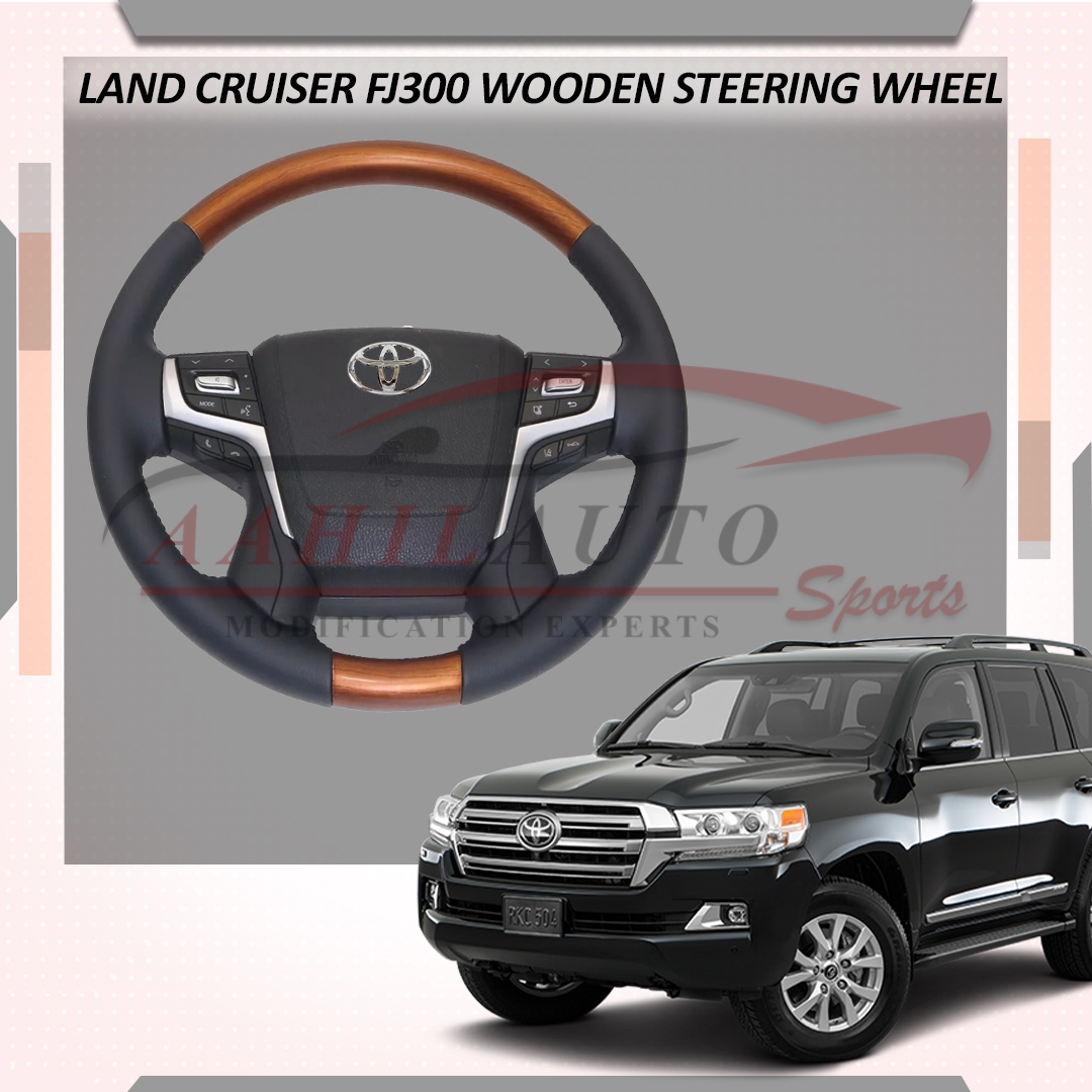 Toyota Land Cruiser Wooden Steering Wheel Beige + Dark Wood