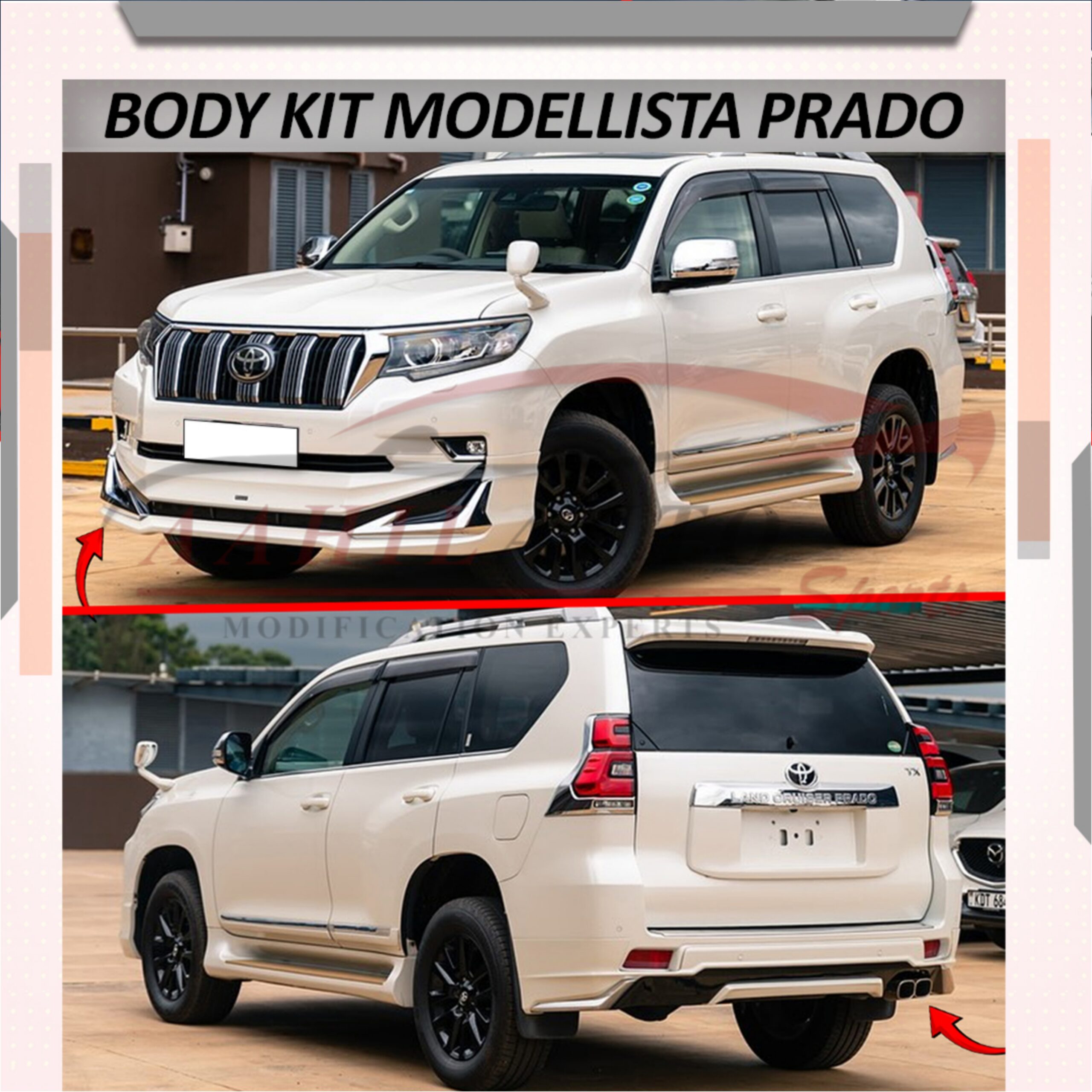 Enhance The Look of Your Toyota Prado with the Modellista White Front Body Kit 1PC for 2018-2021, explicitly made for the 2018-2021 Toyota Prado. This fashionable and long-lasting body kit blends well with your vehicle and offers high performance on the road. This kit is available at Sehgal Motors and keeps your truck elegant and safe at the same time.